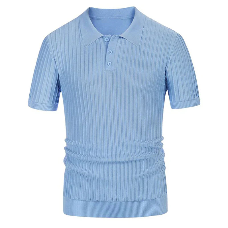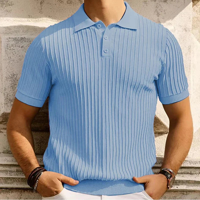 Ta męska koszulka polo prążkowana to świetny wybór dla mężczyzn 50+, którzy cenią elegancję bez wysiłku. Wykonana z miękkiego materiału o prążkowanej strukturze, łączy w sobie wygodę noszenia z ponadczasowym stylem. Dopasowany krój subtelnie podkreśla sylwetkę, a kołnierzyk i zapięcie na guziki dodają koszulce klasycznego wykończenia.